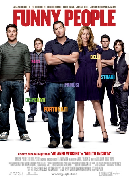 Funny People (commedia, diretta da Judd Apatow, con Adam Sandler, Seth Rogen, Jonah Hill, Eric Bana, Jason Schwartzman, Leslie Mann, Sarah Silverman, Ken Jeong, RZA, Torsten Voges): George Simmons, un comico di successo, quando scopre di essere malato di una grave malattia del sangue, decide di raccontare ad un comico in erba tutti i trucchi del mestiere.